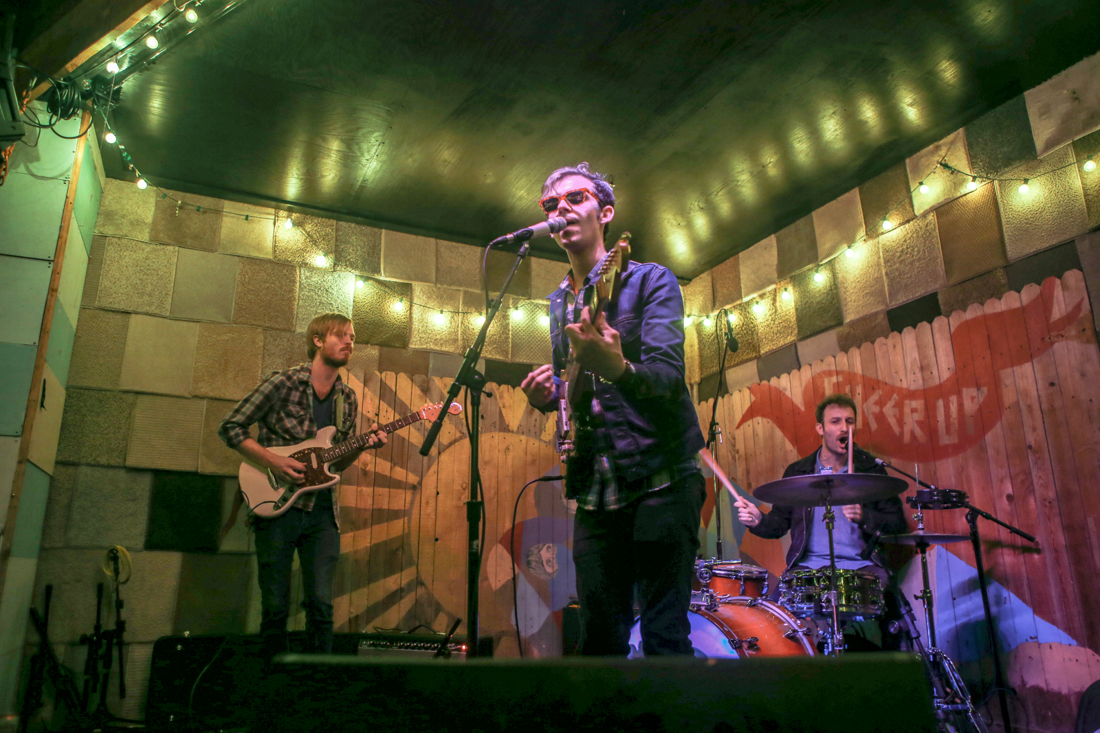 Tiger Waves were the first band to perform inside that night. I’ve been waiting for a Tiger Waves show for a while now. Frontman Reid Comstock moved to New York, and the band is trying to hold it together despite the geographic divide. Ah, the aching romance of long distance relationships. Tiger Waves shows have been hard to come by, but it was the worth the wait. The band’s energy was frenetic as they played outstanding tracks “Contryside” and “Weekends” and opened with a cover of The Byrds’ “So You Want to Be a Rock ‘n’ Roll Star. ”