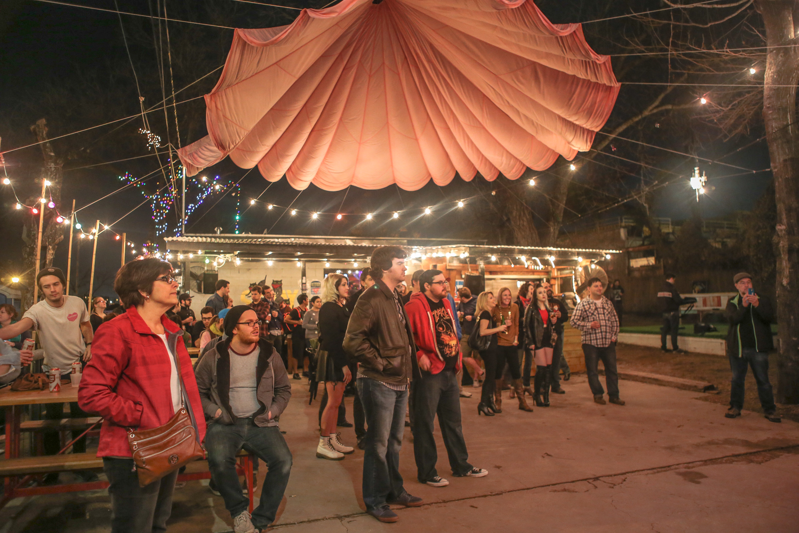 Still later in the evening, Shivery Shakes closed down the outside stage with a set of completely infectious pop. I know that’s a word that gets used a lot… too much (by me, for sure). But I mean it. Proof: As the band began to play, 30-something Austin Town Hall director Nathan Lankford compulsively shouts, “This is my jam!” and then bolts to the front with a Lone Star in each hand to dance unabashedly with a grin plastered across his face. Shivery Shakes just does that to people. Infects you with pop goodness that is. We told you this already when we saw them earlier in the week. What, you missed that show? And then you didn’t read our post? And you missed this show? Look, we’re doing our part, you gotta do yours. Their next gig is January 31st at Holy Mountain with Pageantry and Black Books. Don’t miss it, okay?